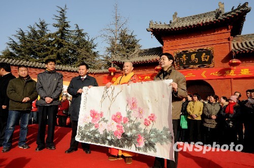 白马寺举行慈善书画义卖。中新社发 张光辉 摄