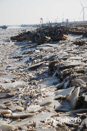 图:渤海十级“阵风” 山东渔港冰漫码头(4)