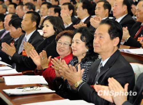 1月23日下午,专程来福州参加福建省政协十届三次会议的澳门特邀委员认真听取福建省政协主席梁绮萍在本次会议上作《十届福建省政协常委会工作报告》。中新社发 刘可耕 摄