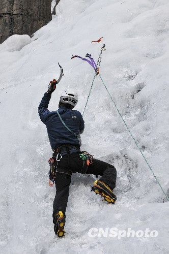 图:山东日照冰瀑奇观引来攀冰客(2)