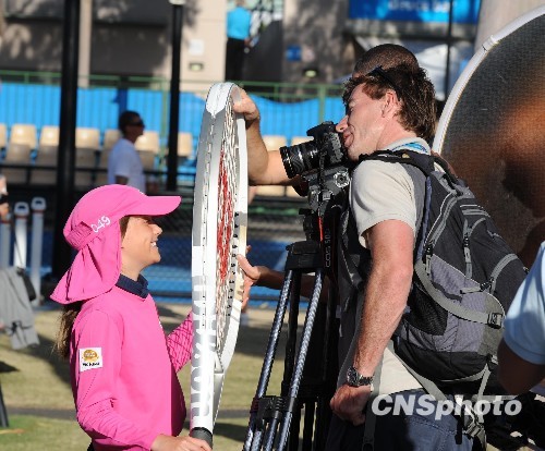 图:李娜进入澳网16强 球迷簇拥离场(2)