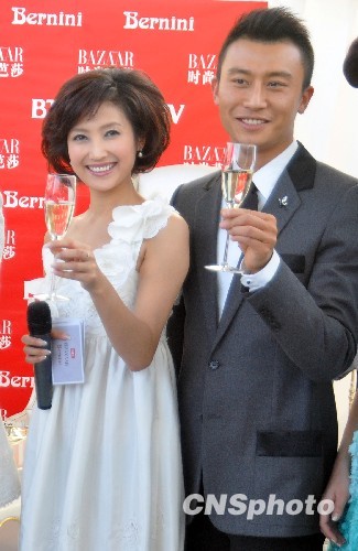 图为主持人春妮、曹涤非举杯庆祝。中新社发 李学仕 摄