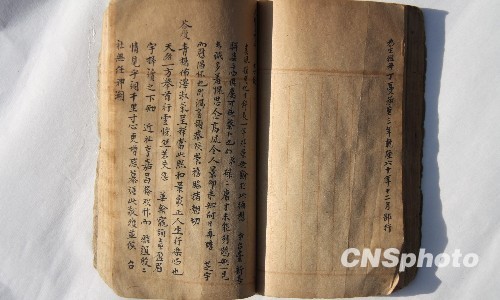 1月23日,山东发现晚清民间“婚丧嫁娶”手抄本工具书。据山东聊城堂邑镇政府工作人员孙树贵介绍,该书系当地秀才袁树梅等人所著,距今约200余年。中新社发 孔政 摄