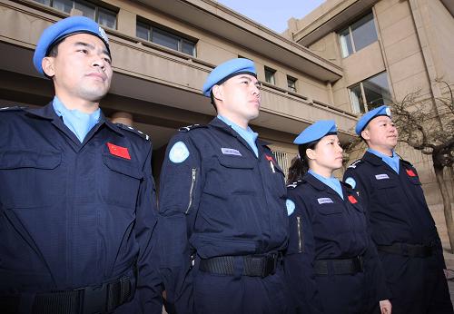 赴海地增援的四名中国维和警察准备启程。陈建力 摄