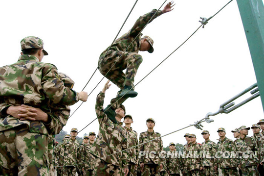 90后新兵身手不凡 “凌空飞渡”铁索桥(2)