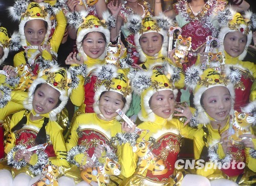 1月25日,在台北市举行的一场活动中,台北小朋友以福虎装束亮相。农历虎年将近,台湾迎新春气氛日渐浓郁。中新社发 曾嘉 摄