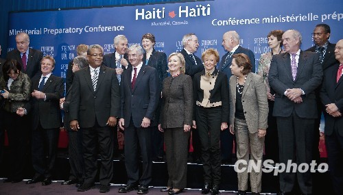 加拿大当地时间1月25日,海地主要捐赠国的外长、联合国和国际组织的代表出席在加拿大蒙特利尔举行的首次海地重建国际外长筹备会,为海地震后长期重建制定基本政策和目标。加拿大外长坎农主持,海地总理贝勒里夫、美国国务卿希拉里、法国外长库什耶等出席了为期一天的会议。