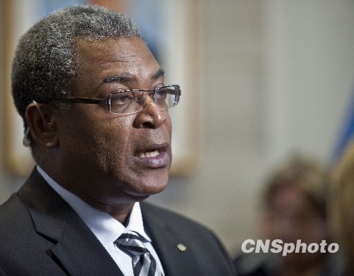 海地总理贝勒里夫今天在蒙特利尔表示,他希望得到国际社会重建海地的长期合作承诺,重建一个不同于过去的海地。中新社发 陈钢 摄