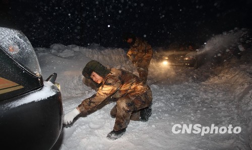 新疆暴雪致道路严重受阻 官兵紧急救援(3)