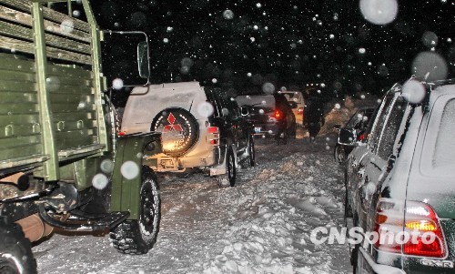 新疆暴雪致道路严重受阻 官兵紧急救援(5)