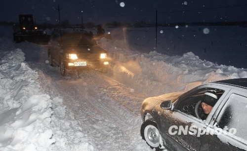 新疆暴雪致道路严重受阻 官兵紧急救援(6)