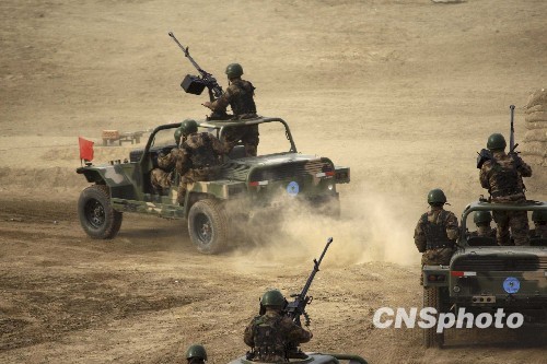 1月24日,中原某黄河滩头,上演习了一场空地一体、垂直打击的空降“立体战”:天上,伞兵突击车、伞兵突击队员多路成批次离开大型运输机,如同璀璨的群星空降在中原大地;地面,“模拟现代战争景状”的演兵场上,摩步兵、防空兵、电子对抗兵、工兵等诸多兵种斗志斗勇……这是空降兵某部首次组织的严寒、复杂条件下全要素的实兵、实弹、实装立体空降作战演练。图为空降兵伞兵突击车迅速集结对“敌”进行攻击。中新社发 魏红雨 摄