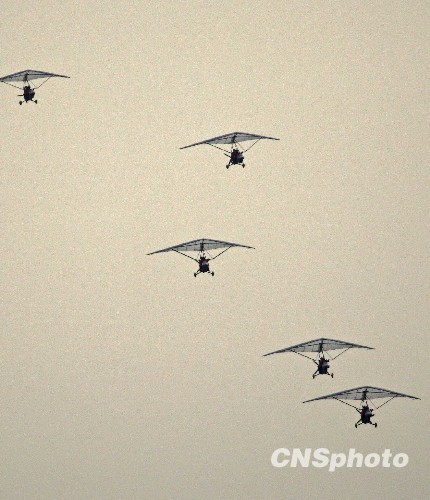 图为空降兵使用动力三角翼飞行器对低空进行侦察。中新社发 谭超 摄