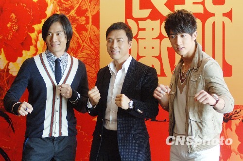 1月26日,由李仁港执导,甄子丹、赵薇、吴尊、戚玉武、徐子珊领衔主演的浪漫武侠电影《锦衣卫》在京举行全球首映庆典,除女主角赵薇缺阵外,导演携主演阵容齐齐亮相。图为戚玉武、甄子丹、吴尊。中新社发 李学仕 摄
