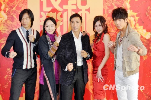 图为甄子丹、吴尊、戚玉武、徐子珊、萨顶顶亮相发布会。中新社发 李学仕 摄