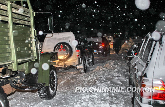 图:新疆边防团官兵暴风雪夜救民车(2)