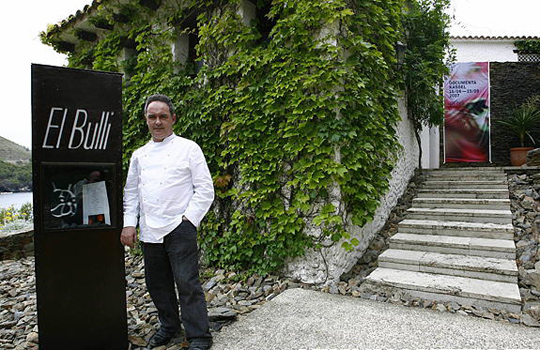 图为阿德里亚在埃尔布利餐厅门前留影的资料照片(2007年6月16日摄)。