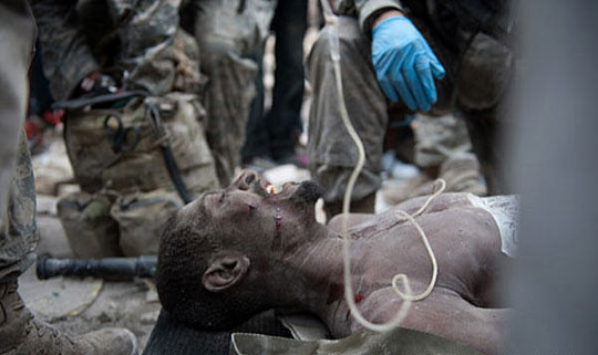 1月26日,一名被困于海地太子港奇迹路废墟中14天的35岁男子被美国救援人员成功救出。
