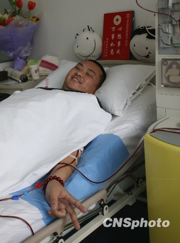 1月28日上午,来自四川的志愿者李勇在北京307医院为南开大学哈萨克族女大学生阿依努尔捐献了180多毫升造血干细胞。阿依努尔2009年确诊患有急性淋巴细胞白血病,“阿依努尔”在哈萨克语中是“月光”的意思。