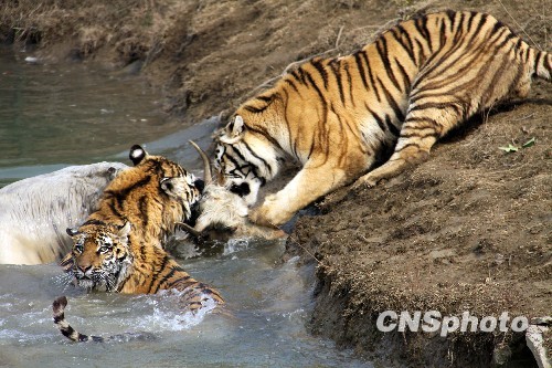 组图:牦牛受惊误入虎区水塘命丧虎口(4)