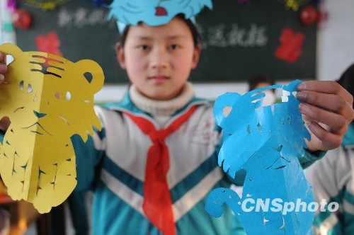 图:河南南阳一小学布置寒假作业“剪纸老虎”(3)