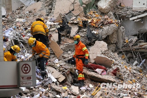 1月29日下年,香港九龙土瓜湾马头围道45号的一幢五层旧住宅楼坍塌。已证实有一女子死亡,多人失踪。 中新社发 郑祚声 摄