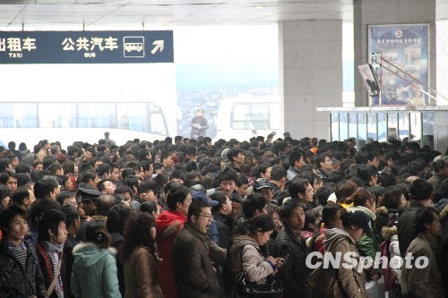 2010年1月30日,2010年全国春运拉开帷幕,南京火车站采取在站前广场搭建临时售票窗口、开设学生购票专窗等措施,方便旅客购票。今年铁路春运自1月30日起至3月10日止,为期40天。中新社发 阿董 摄