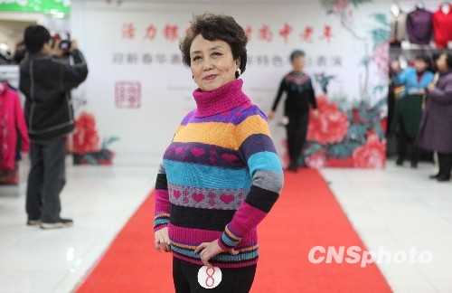 1月29日,北京一商场进行特殊的服装“秀”,让商场购物的顾客亲眼看到所售服装穿着的效果,这些“模特”是周围社区的十多个喜欢服装展示老人,来给商场增加人气和喜庆的氛围,很受顾客的欢迎。中新社发 老罗 摄