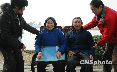 2010年1月29日,苏州工业园区唯亭镇65对“金婚”老人携手出席庆典活动。新春佳节临近,苏州工业园区唯亭镇人民政府为镇区的65对80岁以上的原配“金婚”老人举办庆典活动,为老人们送上象征幸福的新年礼物,并请专业摄影师为每对夫妇拍摄“金婚”幸福照。 中新社发 苏民 摄