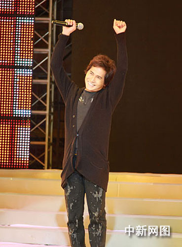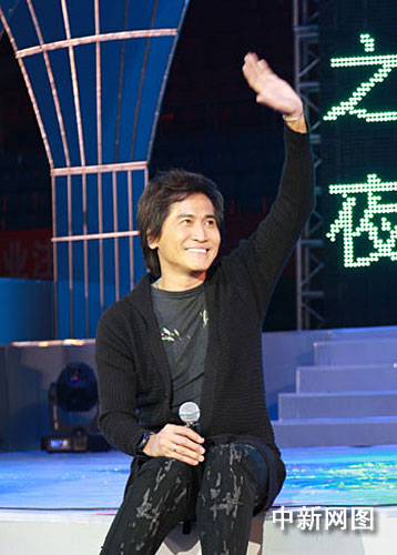 1月30日晚,齐秦在兰州体育馆演唱《狼》、《大约在冬季》等歌曲,带着现场观众回味过往岁月,赢得满场掌声。当日,一场某企业答谢客户的演唱会在这里举行。摄影:殷春永