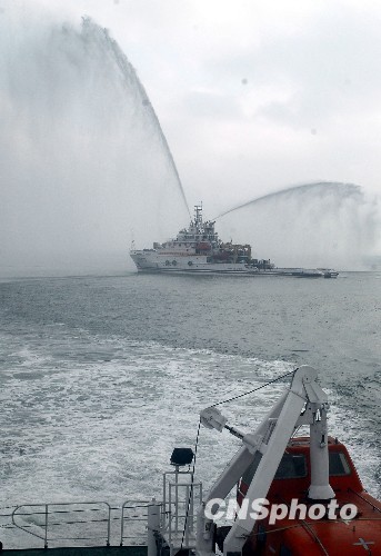 组图:春运首日专业救助船巡航琼州海峡(2)