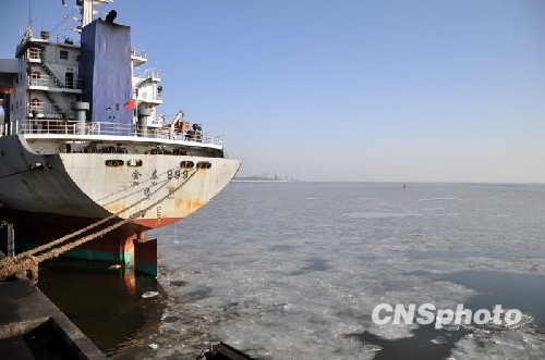 连续几天的低温天气使渤海湾出现罕见的结冰现象,随之出现近30年来同期最严重的冰冻灾害。在秦皇岛沿海各海域,零下20摄氏度以下的最低气温持续多日,其中1月6日突破零下26摄氏度,创56年来历史同期最低气温,海冰向海洋深处延伸50余米。目前,随着天气日渐转暖,渤海湾秦皇岛海域冰情正逐步缓解,电煤运输等生产行业也逐渐恢复正常。图为1月31日,电煤运输正在恢复的秦皇岛港东港码头。中新社发 赵实 摄