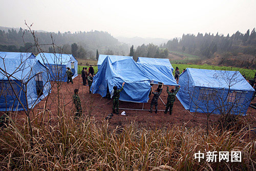 灾区加紧搭建临时安置帐篷