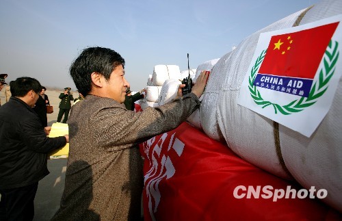 图为石家庄国际机场整装待发的救援物资。中新社发 刘震 摄