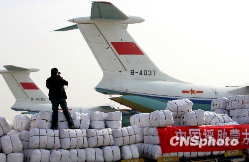 图为担任本次飞行任务的三架空军大型运输机。中新社发 刘震 摄