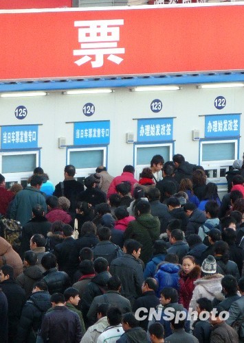 北京西站临时售票处人如潮。中新社发 玉龙 摄
