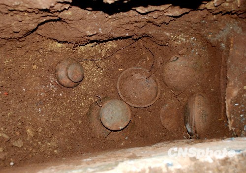 在水泉镇西汉墓葬群拍摄的出土文物。中新社发 刘明祥 摄