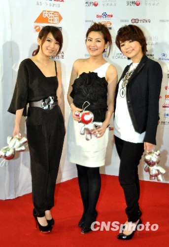 图为S.H.E获得最热门港台组合奖。中新社发 李学仕 摄