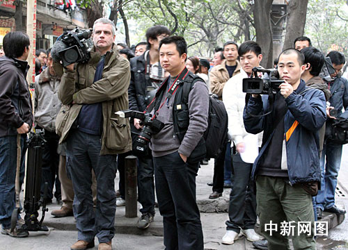 2月2日,在重庆开庭审理的文强案引起境内外记者关注。