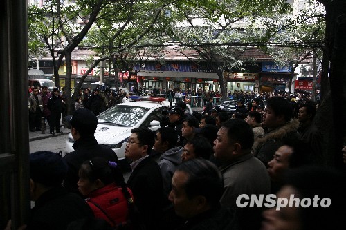 图为法院外挤满了群众。中新社发 潘钰琳 摄