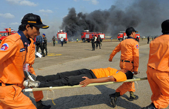 2月2日,柬埔寨首都金边的一个空军基地举行空难演习,提高发生空难时各部门的协调能力及救援人员的应急处理能力。