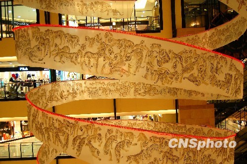 2010年2月3日,一幅长200米的“千虎画卷”亮相上海市解放西路梅龙镇广场,喜迎农历虎年和上海世博会。这幅作品由专长画虎的农民画家肖彦卿历时3个多月时间手绘2010只老虎而成,画卷展示结束后将捐献给2010年上海世博会公众参与馆。