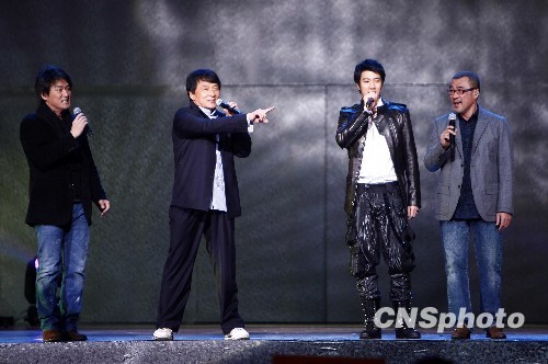 2月3日晚,成龙新片《大兵小将》迎春首映礼在北京举行,周华健、李宗盛到场祝贺,和成龙、王力宏一起高歌真心英雄。中新社发 杜洋 摄