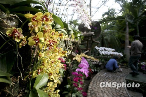 2月4日,在北京植物园热带展览温室内工作人员正忙着布置“诺亚方舟”景区。从2010年2月9日至2月20日,北京植物园热带展览温室内将举办第六届北京兰花展。展览由中国植物学会兰花分会、北京植物园等共同举办。兰展的主题是“气候变化与兰花”,展览将倡导大家开展低碳生活,呼吁大家保护我们身边的环境。