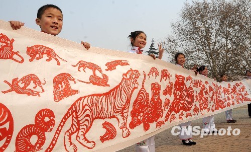 图:洛阳师生共创10米民间剪纸喜迎虎年(2)