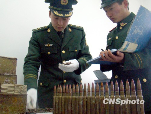 2月4日,浙江省洞头县北岙镇渔民将出海作业时从海底打捞上来的4铁皮箱子弹交到洞头边防派出所。据边防民警介绍,这4箱军用子弹共有1000多发,保存较为完好,估计还具有杀伤力,目前警方已对子弹进行妥善处理。