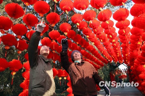 2月4日,随着虎年传统春节的临近,北京地坛公园庙会的环境布景工作已经完工,园内外都被喜庆的灯饰装扮,成为京城迎春的一道靓丽风景。