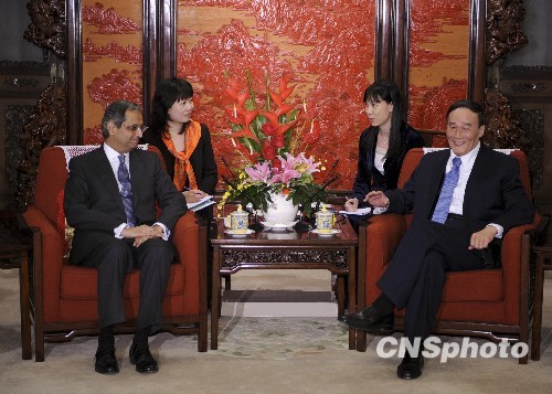 2月5日,中国国务院副总理王岐山在北京中南海紫光阁会见了花旗集团CEO潘迪特一行。