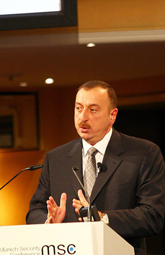 阿塞拜疆总统阿利耶夫在德国慕尼黑举行的第46届慕尼黑安全政策会议开幕式上发言。