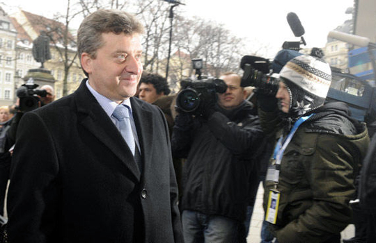 马其顿总统格奥尔盖·伊万诺夫(左)到达第46届慕尼黑安全政策会议会场。
